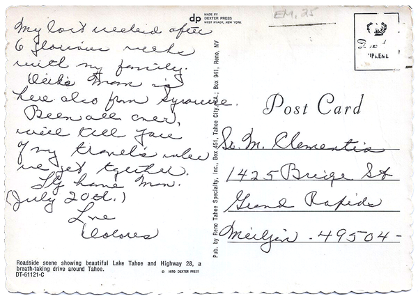 The hotel was situated close to the Lake - and it had a casino. This was a novelty for midwesterners. In those days there weren't even bingo parlors in the midwest. We have a photograph that Steven had tried to take in the casino. But, alas, it is blurred because a very strong arm came down on Steven's. They don't like you to take pictures in a casino.