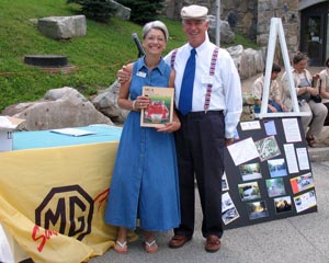 Acting as the BMC press agent for the Press Day Reenactment was Bob Vitrikas, author of The MGA Restoration Guide. Diane had schlepped her original of the book along, just so Bob could autograph it. Is there such a thing as an MGA author groupie? There's Diane, with Bob Vitrikas, holding a copy of Bob's book just after it was signed (a few years late - oh, well).
